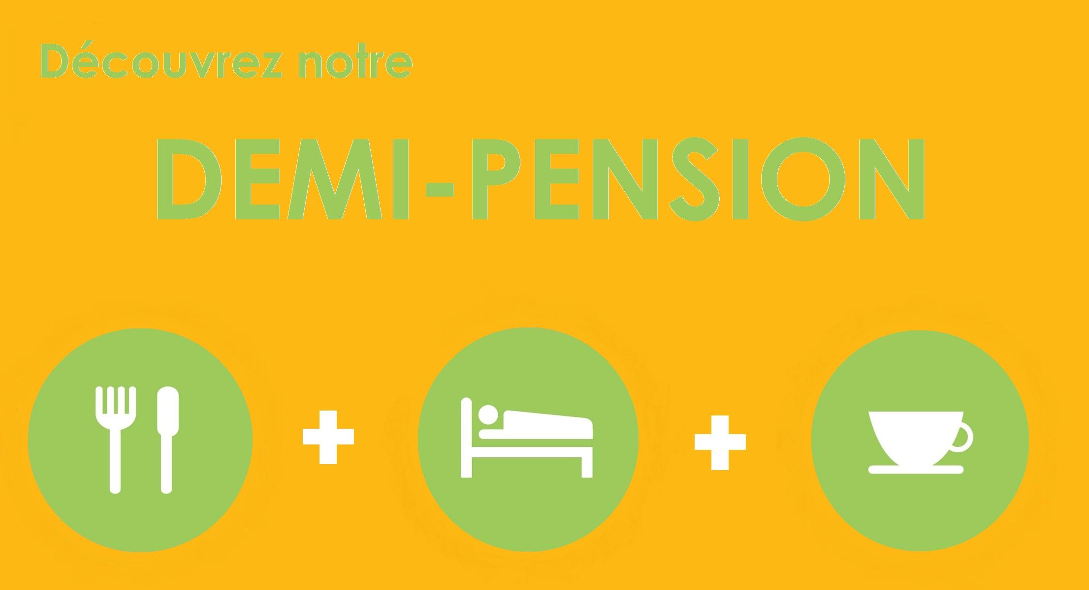 Forfait Incluant 1 nuit en chambre confort pour 2 personnes dans une seule et même chambre avec 2 lits jumeaux, 2 petits déjeuners sous forme de buffet et 2 dîners sous forme de buffet dans notre restaurant " Les Terrasses " (hors boissons) avec un choix d'entrées, plats, fromages , desserts.